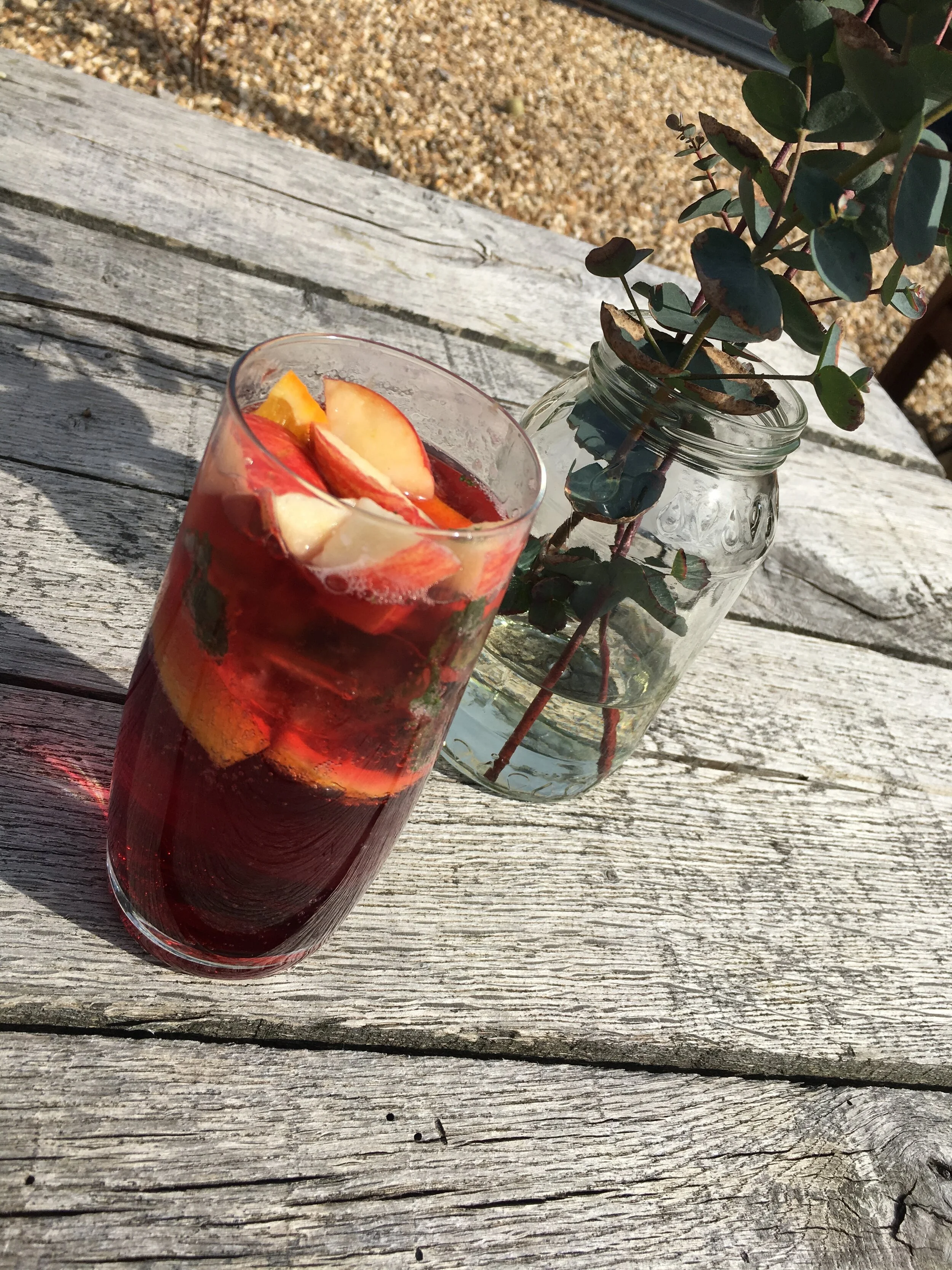 Simply add a dash of tart cherry juice to still or sparkling water for an occasional change to plain water. Or for more of a treat (that's a bit like a super-healthy Pimms!), do what I did here and mix with chopped fresh fruit (apple, lemon, orange), fresh mint, ice & sparkling water.